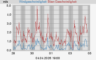 Minimalwert dieser Woche: 0,0 m/s um 00:05:12 (Montag)